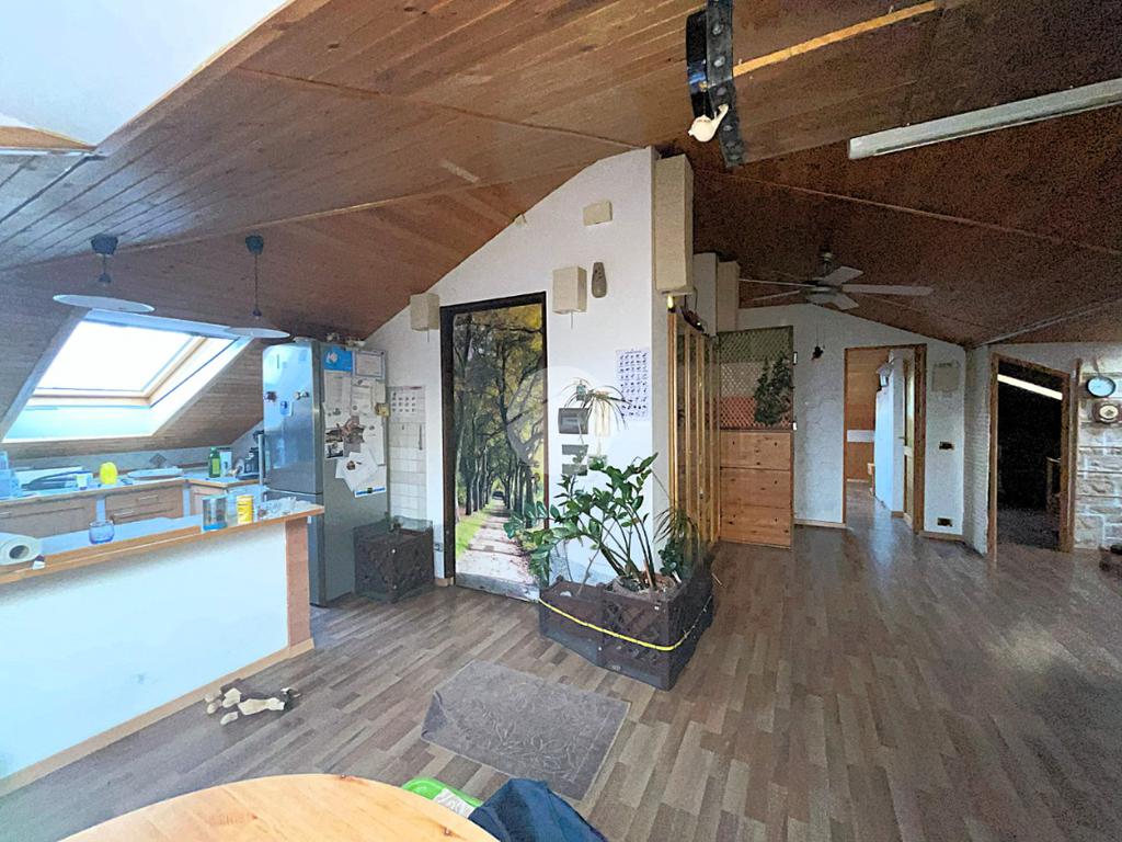 L’immobile, situato all’ultimo piano, è molto luminoso grazie alla presenza di numerosi velux che donano aria e luce agli ambienti.