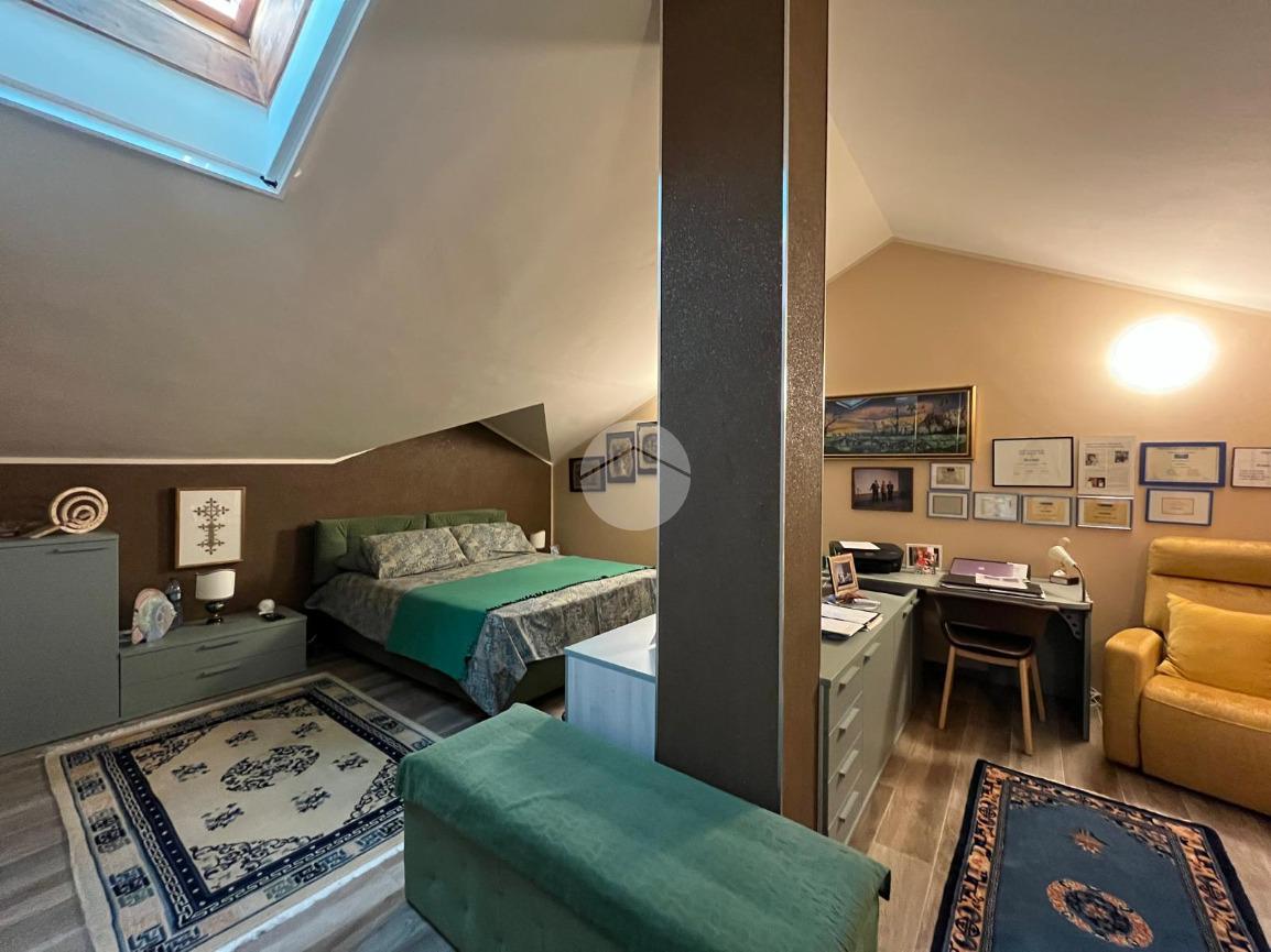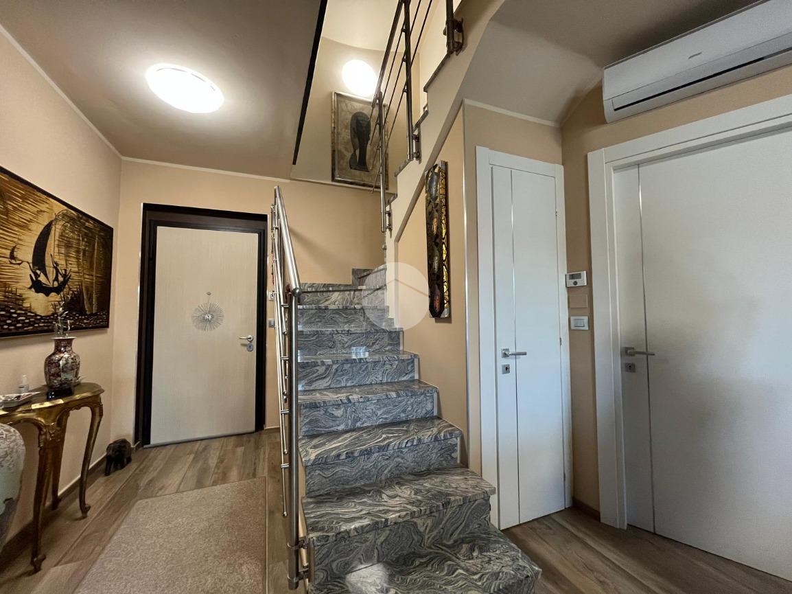 Una raffinata scala interna conduce al piano mansardato, ben sfruttabile nelle altezze.