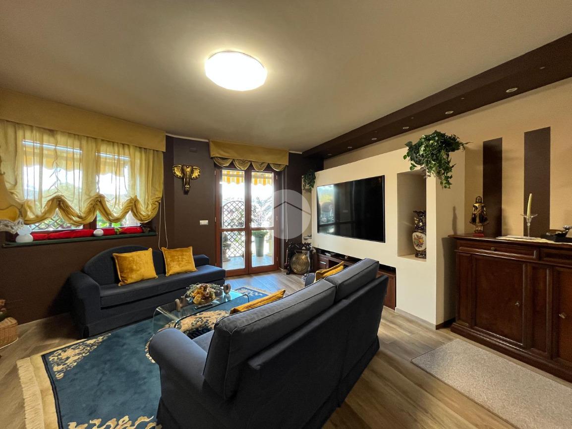 Nel cuore del paese, affacciato sulla piazza principale e comodissimo a tutti i servizi, splendido appartamento disposto su due livelli, situato in un elegante contesto recente del 2015.
