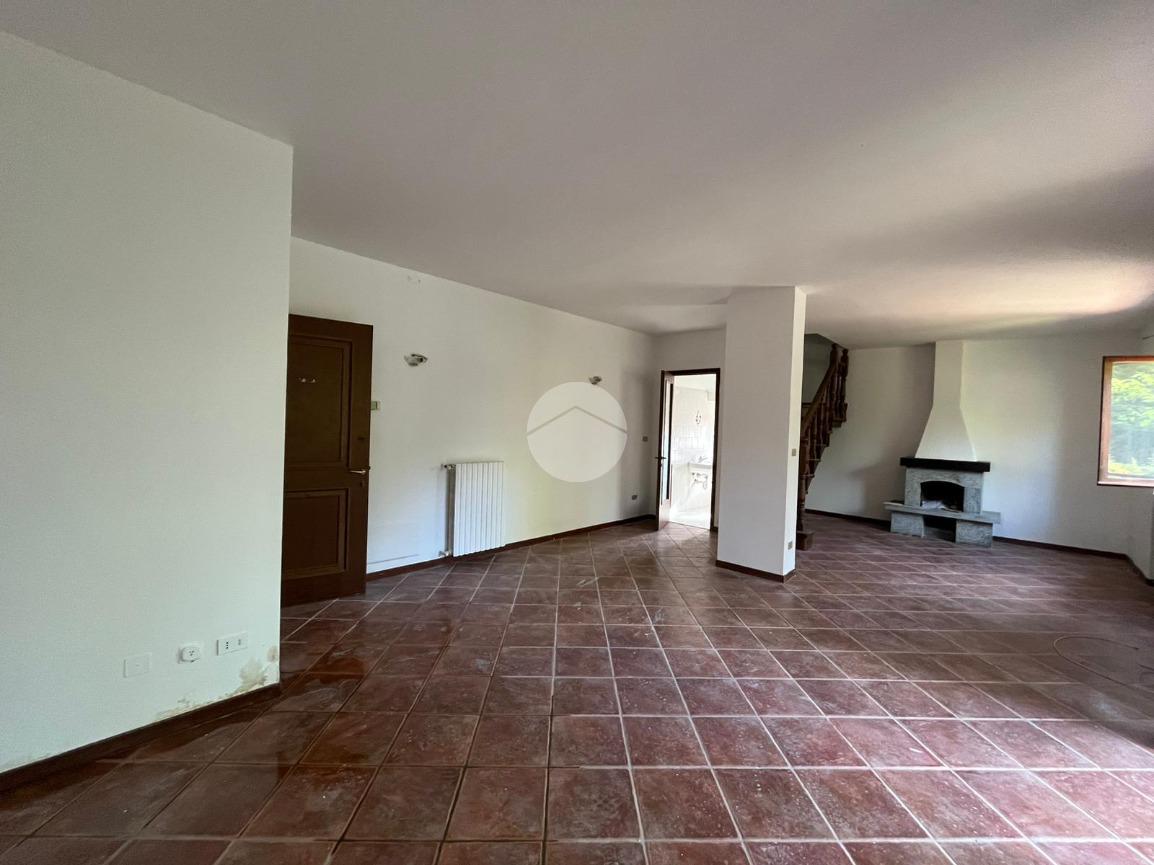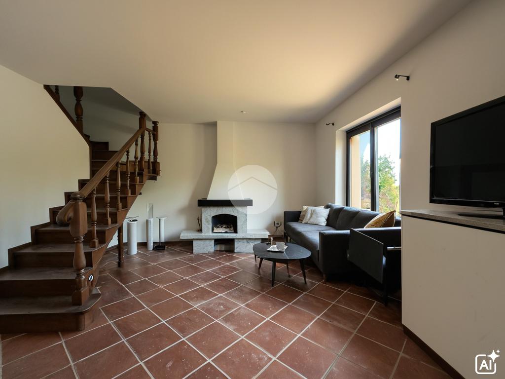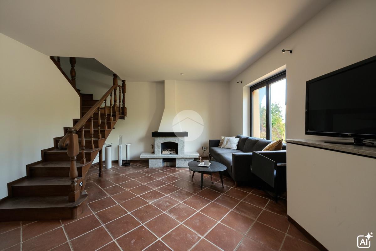 L’ingresso si apre su un ampio e luminoso soggiorno con camino a vista, che dona calore e carattere all’ambiente.