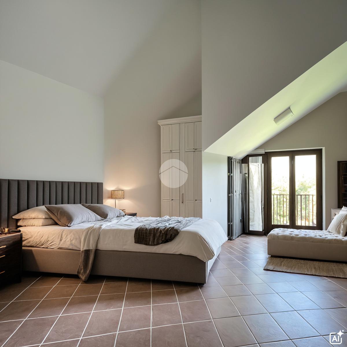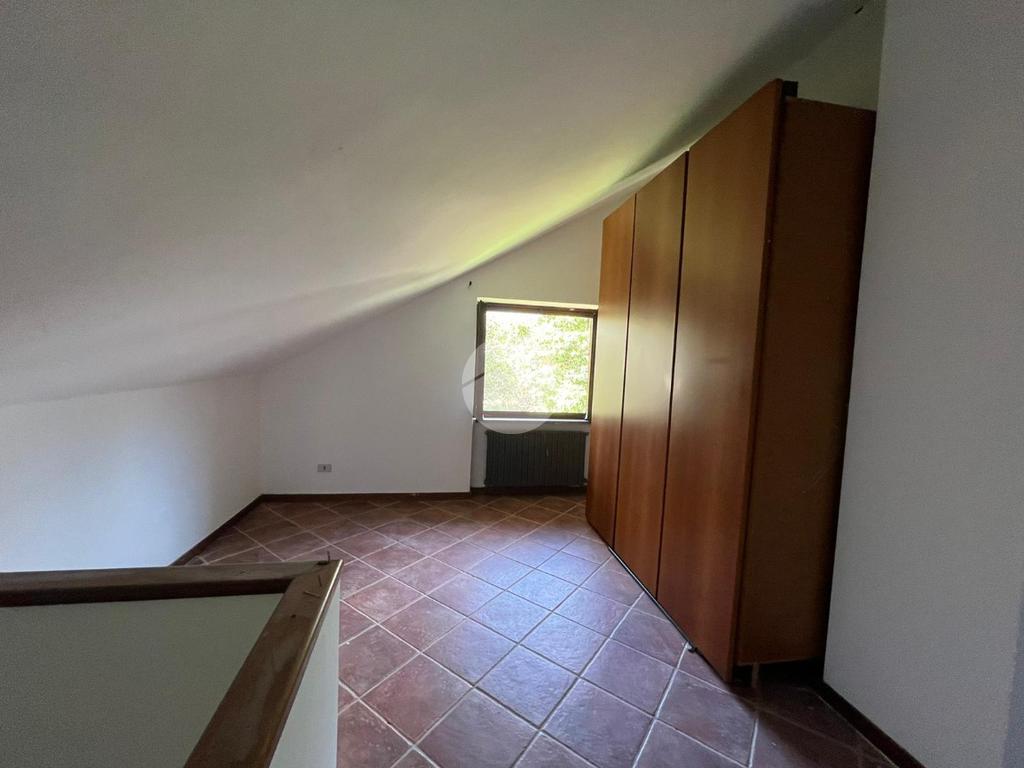 La scala in legno conduce al piano mansardato, ben sfruttabile nelle altezze, dove si sviluppa la zona notte composta da: