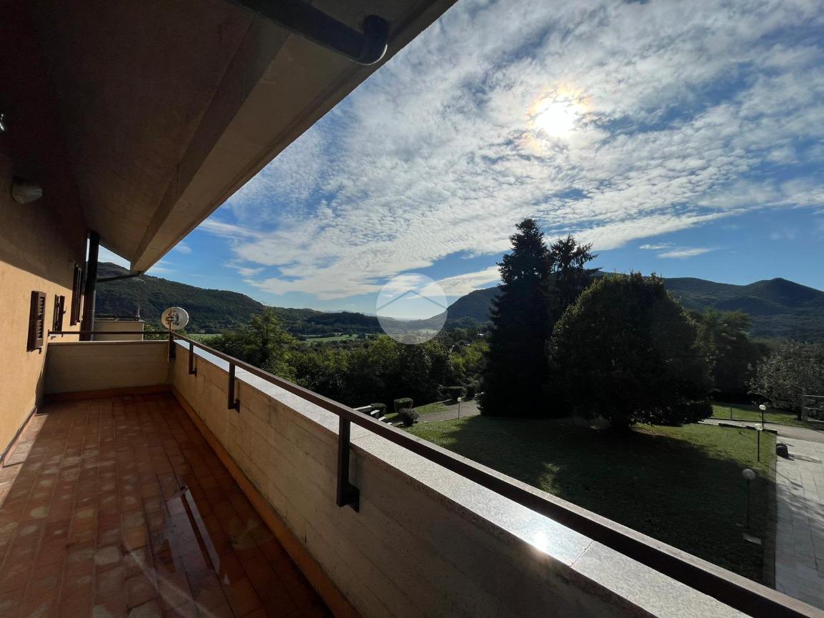 Dal soggiorno si accede a un piacevole terrazzino, ideale per momenti di relax all’aperto, con splendida vista aperta su distese verdi.