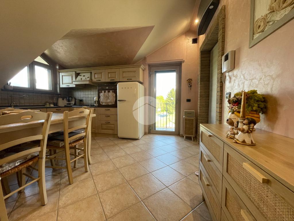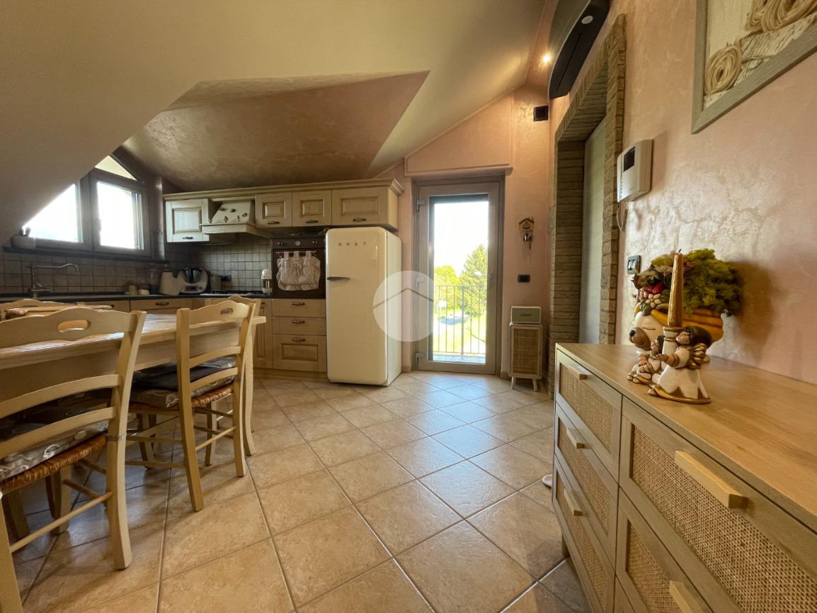 Dal portoncino blindato si entra nella cucina abitabile, con attiguo soggiorno dotato di camino a legna, due camere da letto ed il bagno completo di vasca e doccia.