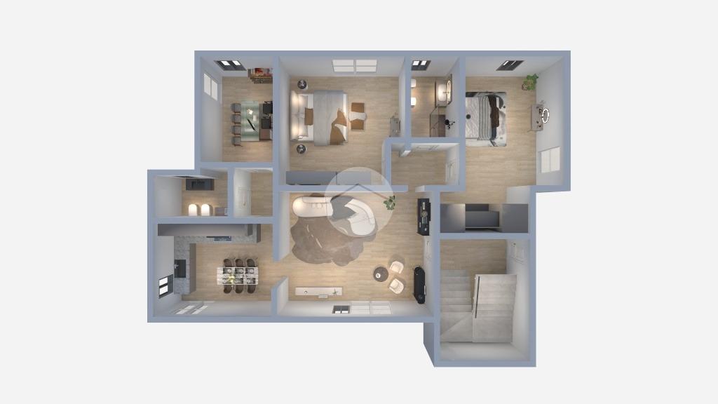 La casa si sviluppa su più livelli, offrendo ambienti luminosi e ben distribuiti.